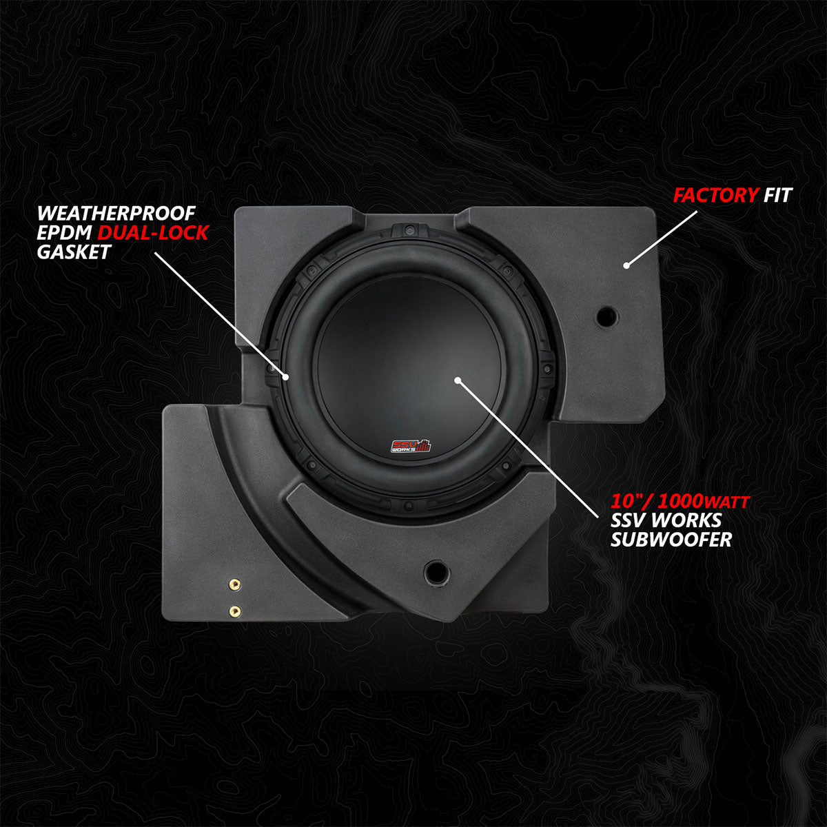 Introducing the newly revised SSV Works V-Spec 1650-watt Phase-5 audio kit designed for the Can-Am Maverick X3! This advanced system enables you to effortlessly install two 6.5" dash-speakers, two rear cage-mounted speaker and two powerful 10" subwoofers, along with a set of Kicker Amplifiers that seamlessly integrates with the included JVC Radio.