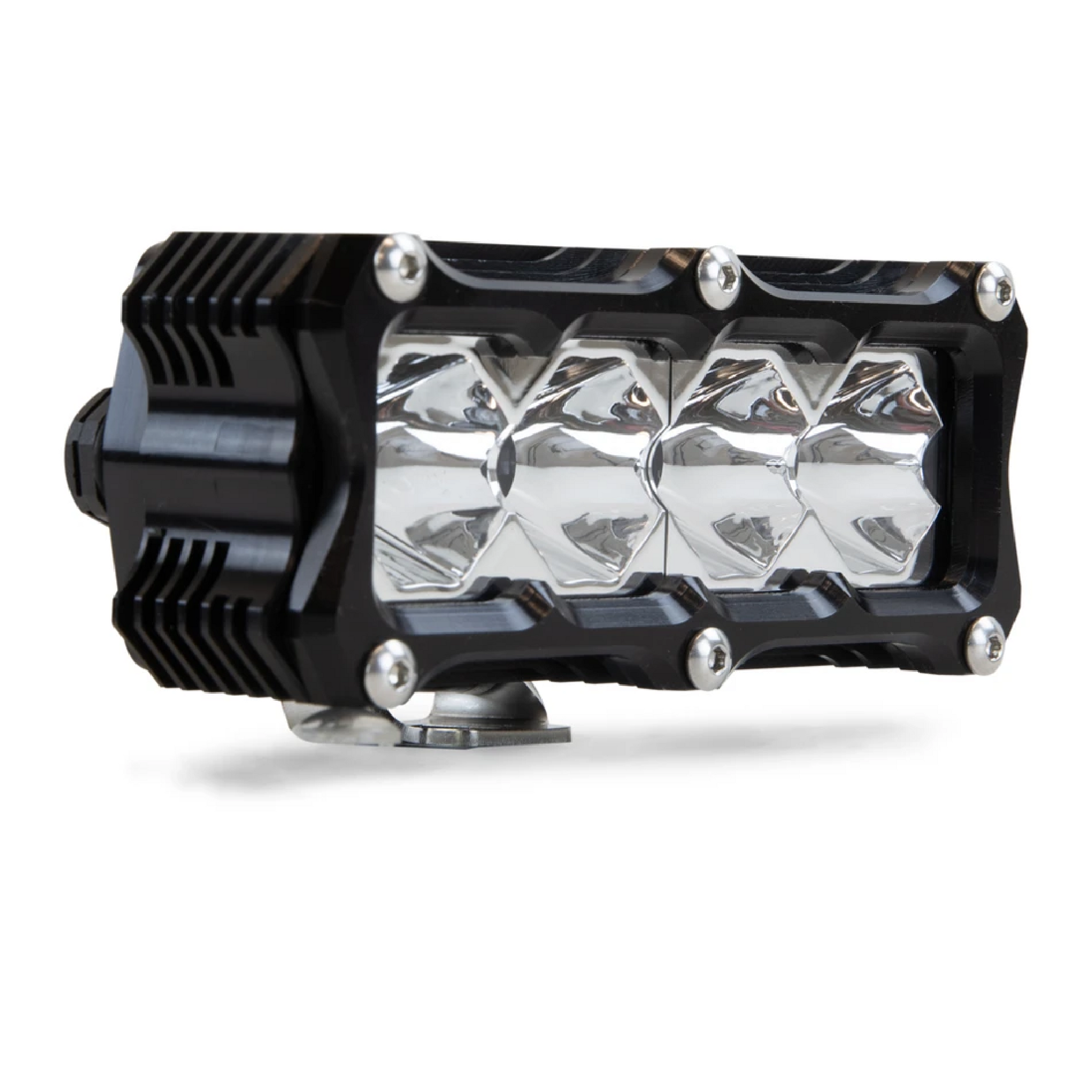 The Heretic BA-4 LED Light Pod is known as the big brother to our staple BA-2 LED Light Pod. The 6-series BA-4 LED pod light is an optimal chase light to a ditch light, A-pillar light and beyond. These high performance clear LED pod lights are designed and manufactured in the USA, housed in CNC machined aircraft-grade aluminum, and outfitted with best-in-class circuit boards that allow temperature control and long-lasting light. The BA-4 LED Light Pod is recommended on the front or rear bumpers of trucks, jeeps, SUVs, and UTVS. They can also be used on the sides and rear of roof racks as a chase light. These light pods are best for clear night conditions.