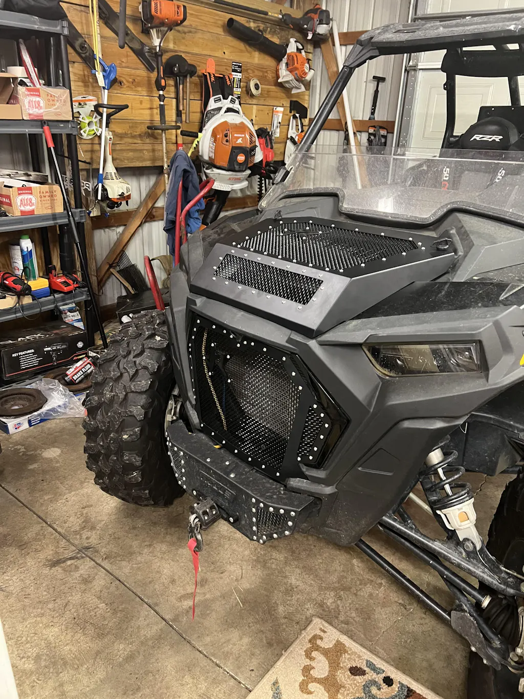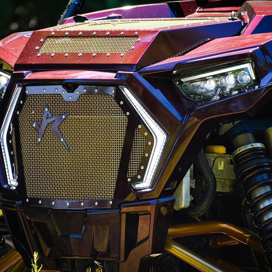 Add better performance and style to your Polaris Rzr 1000 with Rogue's one-of-a-kind mesh hood and grill combo! Rogue Offroad's mesh hood is designed specifically to let radiator heat extract quicker from your UTV, allowing it to run cooler. This 2-piece hood is made from laser-cut 14 ga. steel and is assembled using stainless steel bolts and nuts. It features a high quality black powder-coat finish (with any color option available) and mounts securely using OEM mounting locations. Installation is simple and straight-forward - no drilling or cutting required. This mesh hood and grill are backed by Rogue Offroads' lifetime warranty.